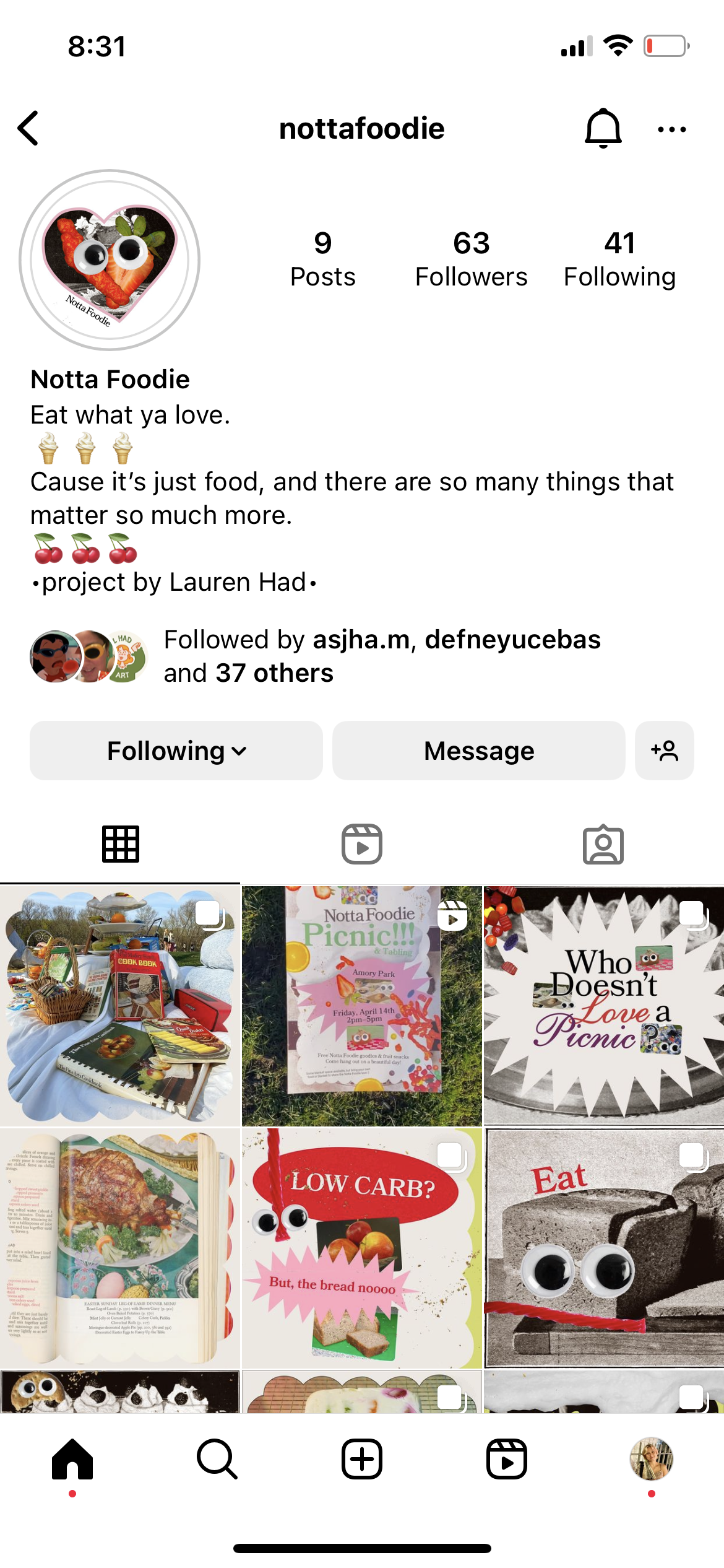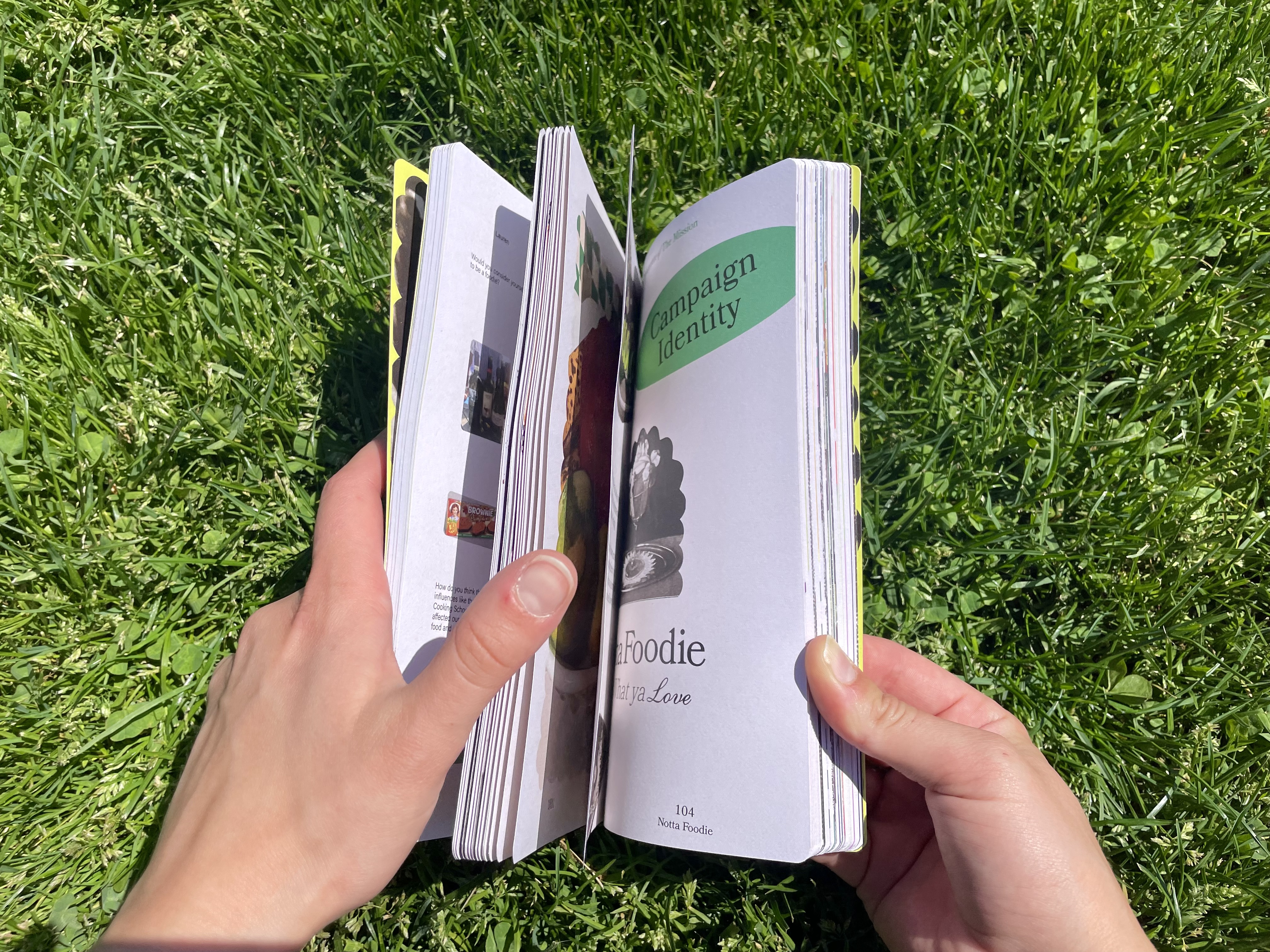 Notta Foodie is a food-positive campaign that celebrates all forms of eating. It aims to break down eisting barriers to eating freely and encourages food as a form of self care and self love. I developed this campaign through an instagram account, poser series, set of interviews, public picnic event, merchandise such as pot holders and stickers, and a campaign book explaining our mission. All of these deliverables as well as my research and design process were documented and recorded in a thesis book.